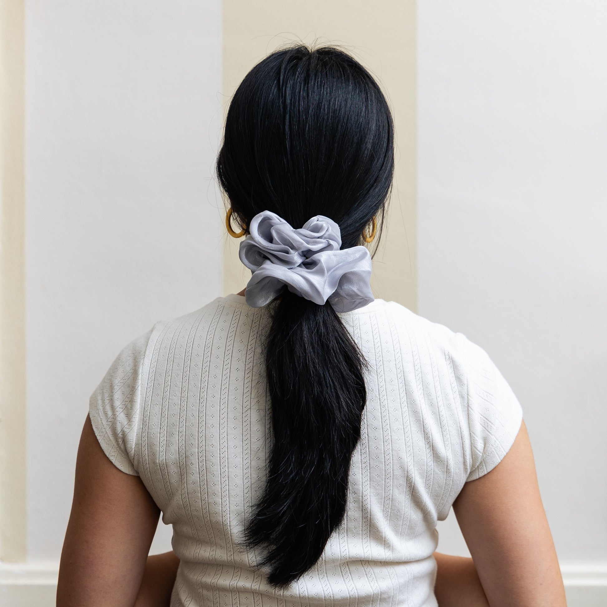Disponible en rose, gris et vert foncé, cet ensemble de trois chouchous est le complément parfait à n'importe quelle tenue. Le tissu brillant offre un look unique.