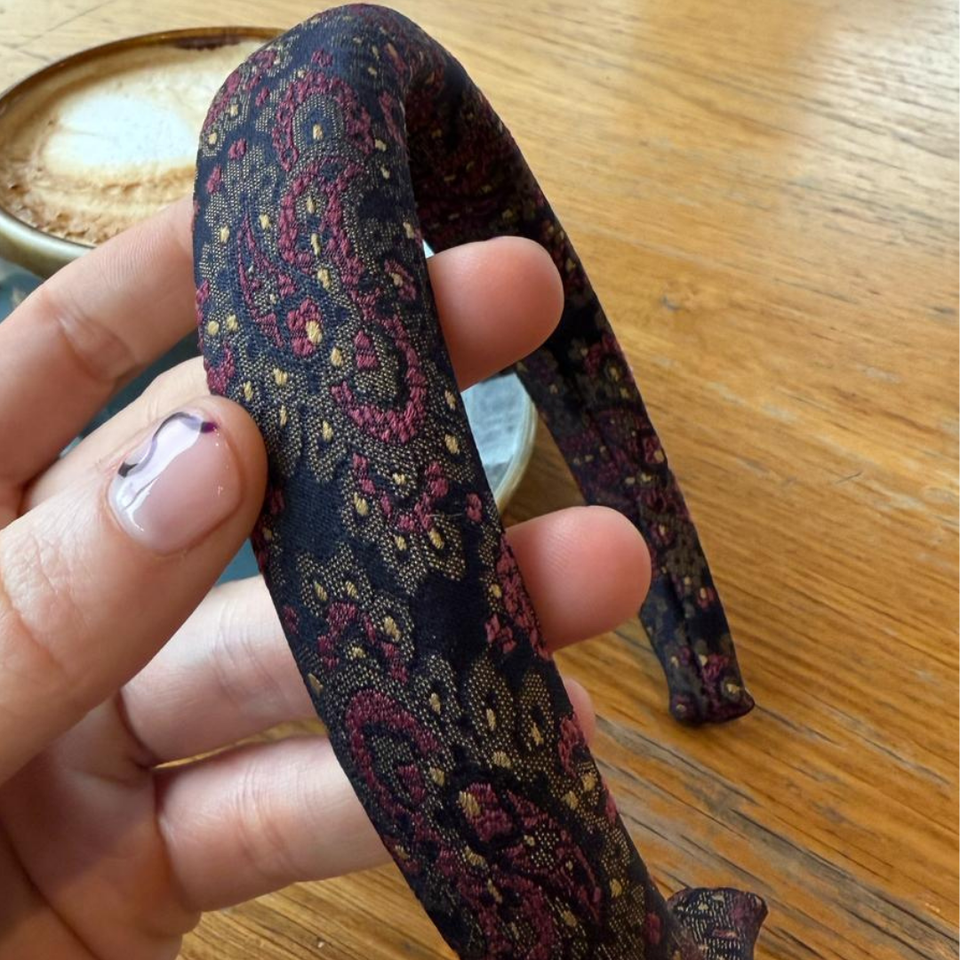 Petite anecdote : ce serre-tête est vraiment unique, car il n'existe qu'en un seul exemplaire. Fabriqué à partir d'une cravate et recyclé.