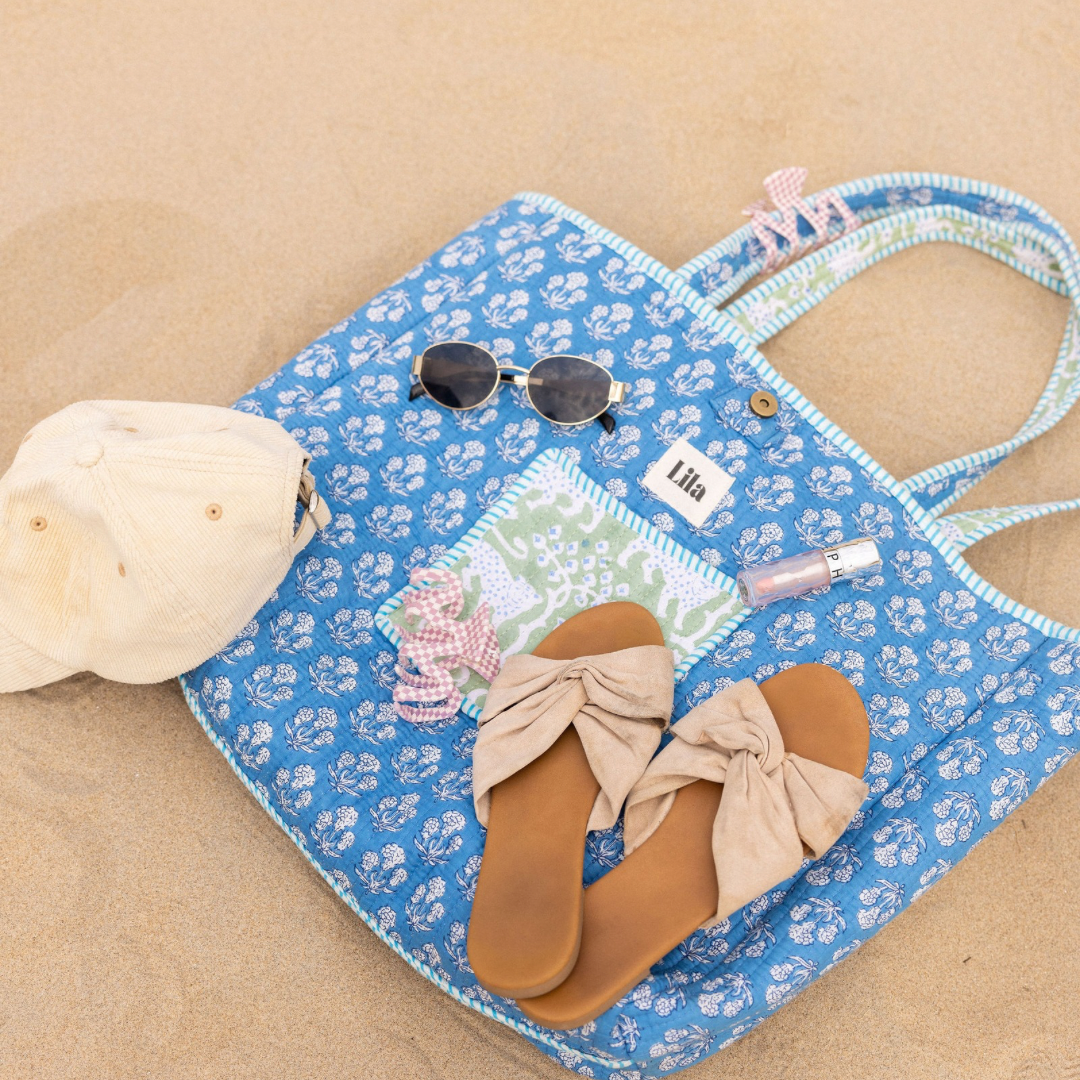 De vrolijke prints op onze tassen en toilettassen worden met de hand gedrukt volgens een eeuwenoude techniek: block printing. Met houten stempels worden de patronen één voor één op de stof gezet.